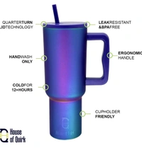 House of Quirk® The Quencher Insulated Tumbler – 1200ML (40oz) with Handle, Lid & Straw – Gradient Color